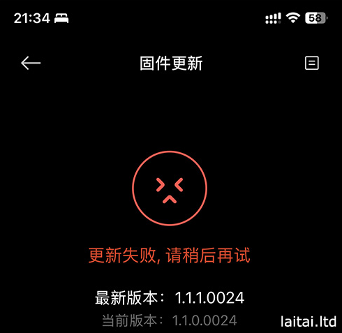 以上两款的智能插座共同特点是联接上路由器的WIFI信号后提示发现新固件,点击更新后均会更新失败。