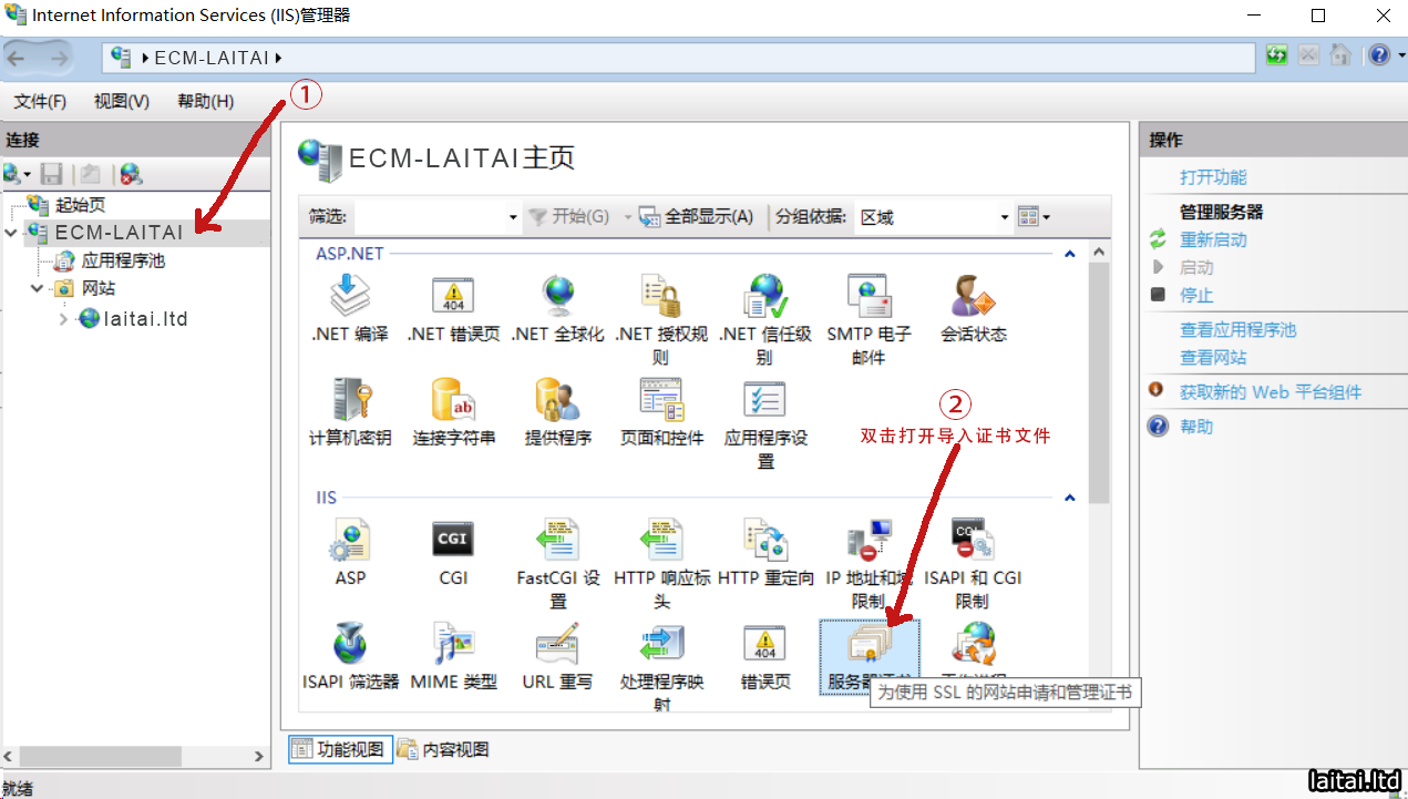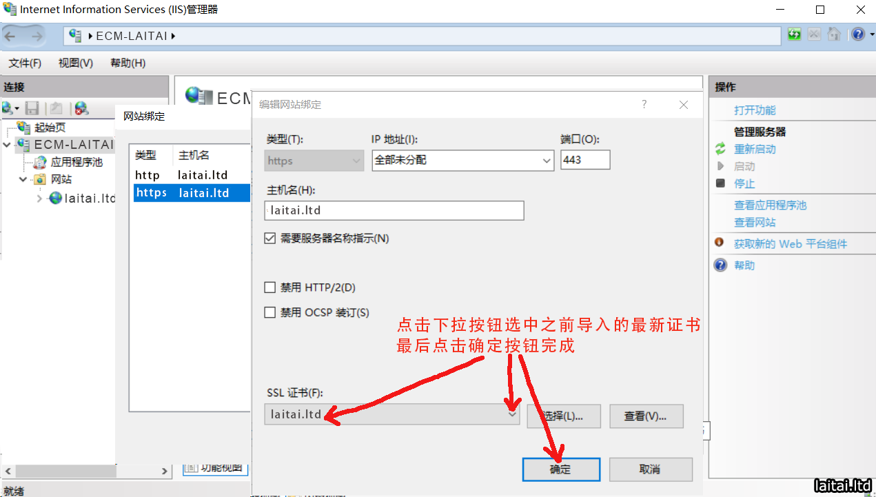 在IIS服务器上替换即将过期的HTTPS证书具体步骤: