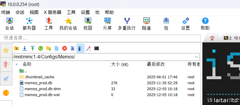 使用MobaXterm ssh登录iStoreOS,find命令查找关键字memos*