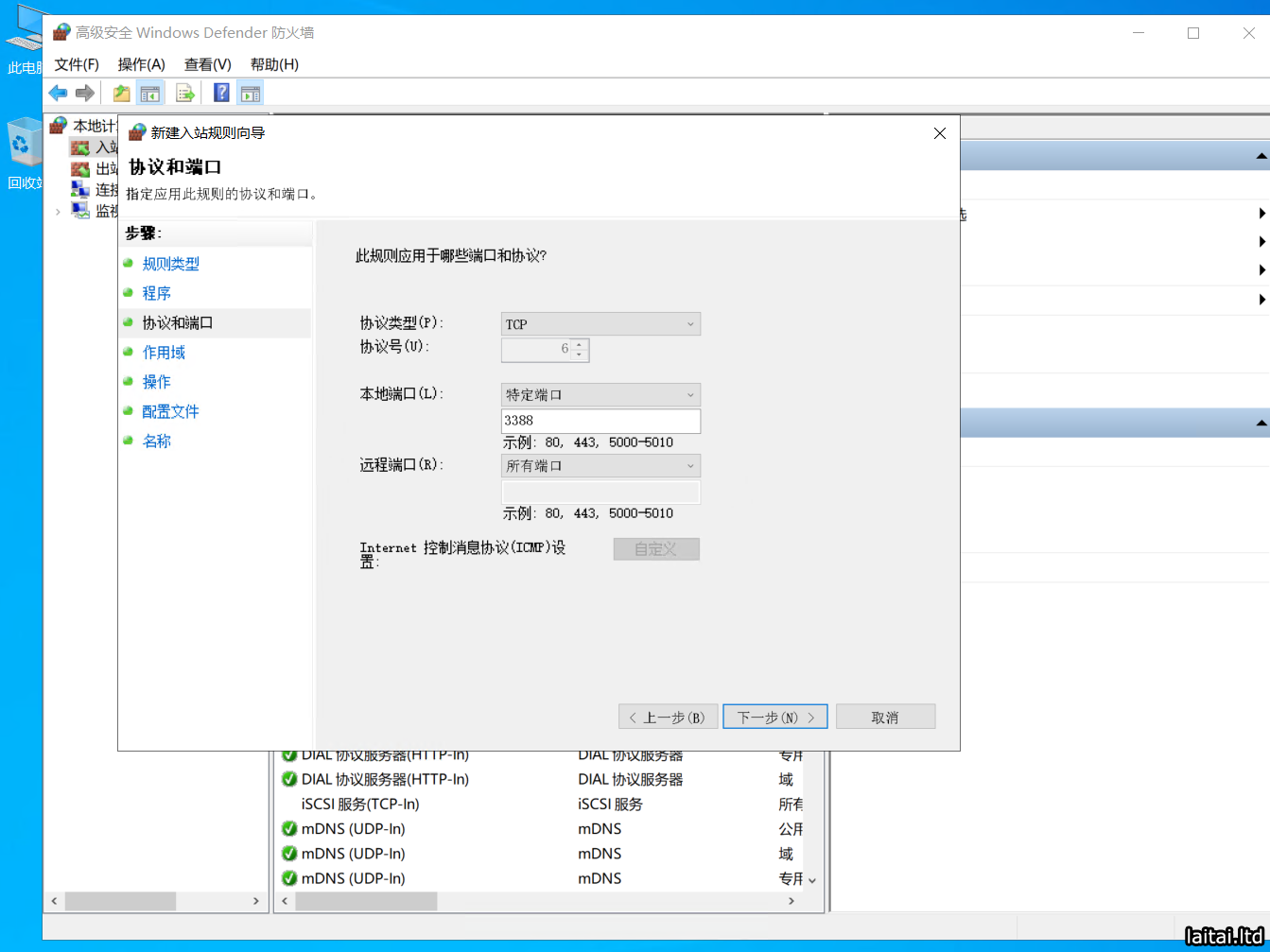 最后,在云服务器控制台安全组里将RDP放行规则里的端口修改成新端口即可。