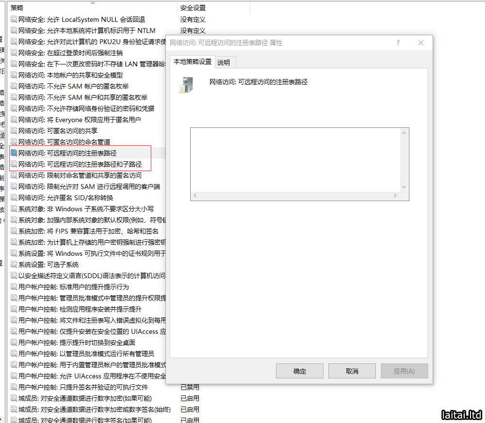 Windows Server安全设置:删除可远程访问的注册表路径和子路径