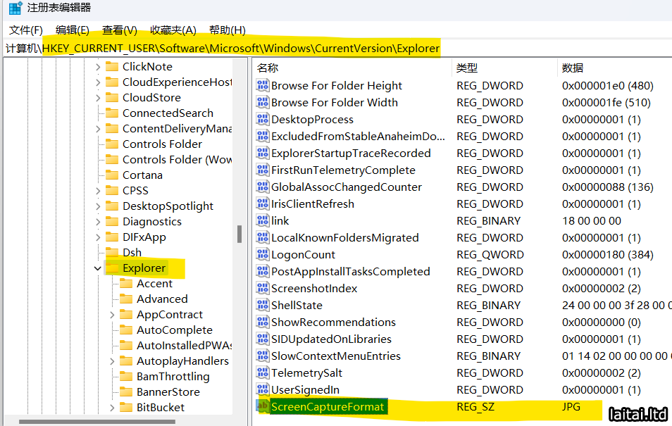右侧空白处右键新建 > 字符串值 > 命名为 ScreenCaptureFormat