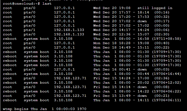 5.使用“last”命令