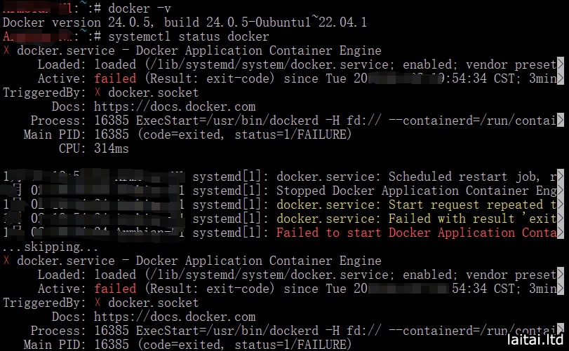 Docker启动失败,查看状态: