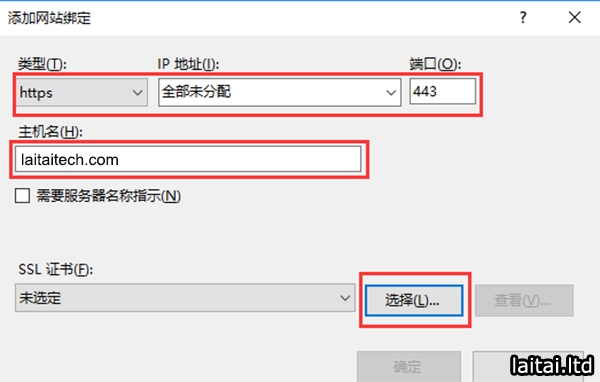 选择类型“https”,选择已添加的SSL证书,点击确定,绑定成功。