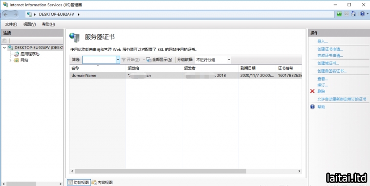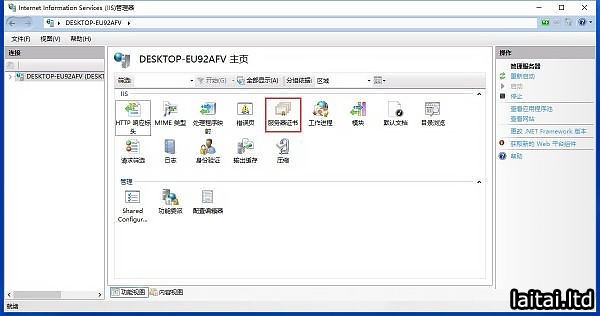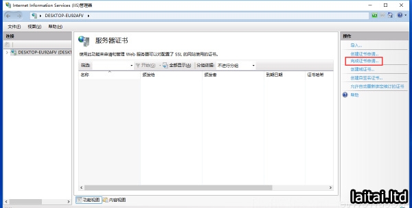 选择需要制作证书的服务器,选择服务器证书选项,进入服务器证书界面