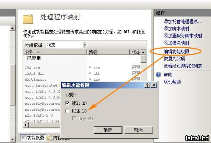 IIS7以上设置网站或目录禁止执行脚本