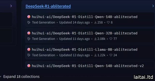 越狱版的DeepSeek R1现已托管在Hugging face上,支持8B、14B、32B