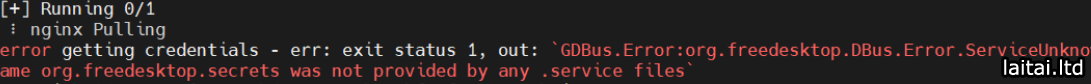 error getting credentials - err: exit status 1, out: GDBus.Error:org.freedesktop.DBus.Error.ServiceUnknown: The name org.freedesktop.secrets was not provided by any .service files
