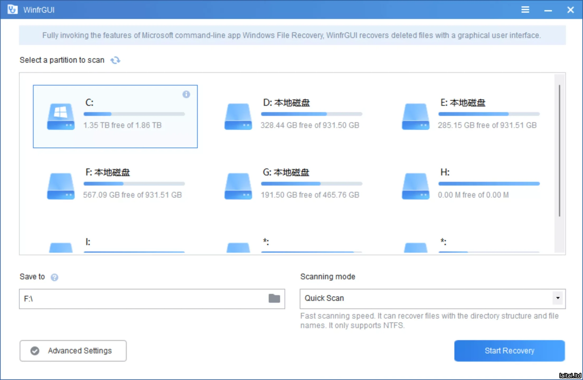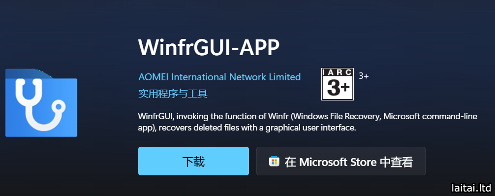 这是一款100% 完全免费的数据恢复软件,可以在微软应用商店上进行下载、安装使用!默认微软官方出品的 Windows File Recovery 是终端下使用的,对于新手来说可能不那么的友好,但是我们可以配合 WinfrGUI-APP 来使用,就非常是直观,完全可视化操作使用!两款应用可以都可以在微软应用商店上下载,安全又放心!下载安装使用:1、Windows File Recovery 【点击下载】2、WinfrGUI-APP 【点击下载】