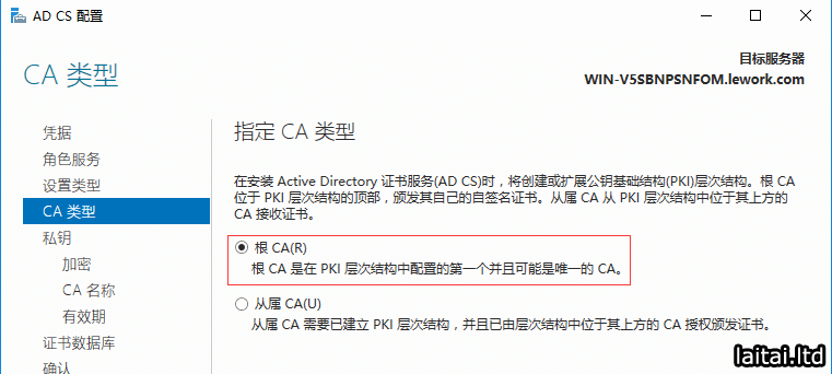 选择根CA,点击下一步