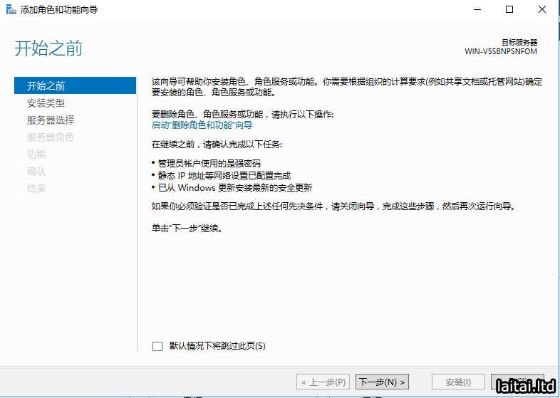 打开添加角色和功能向导,点击下一步