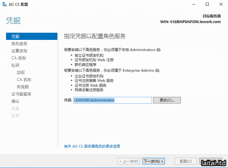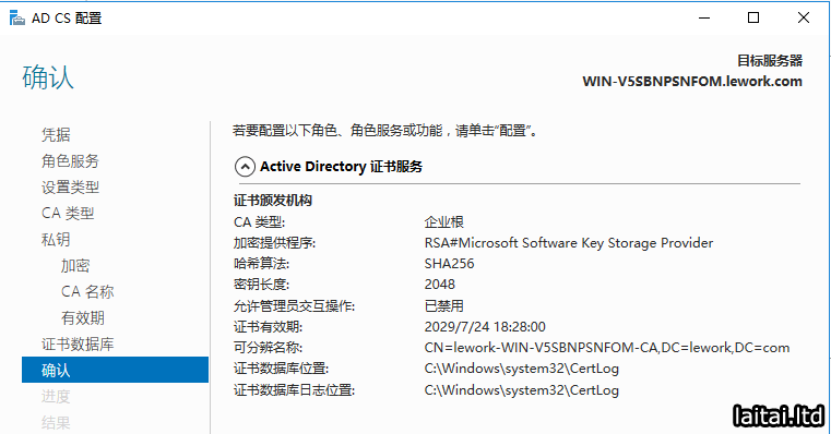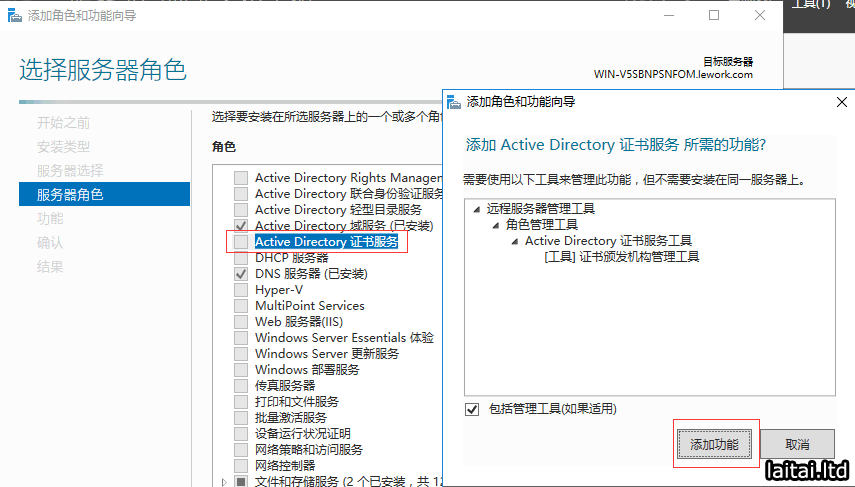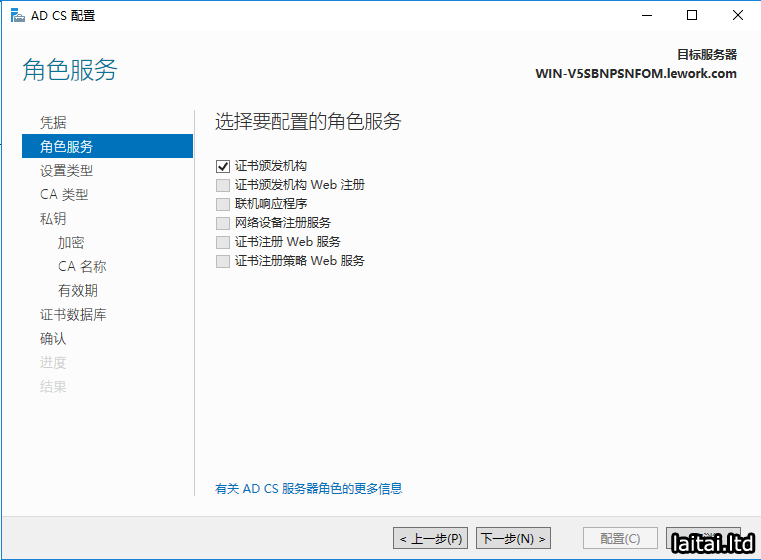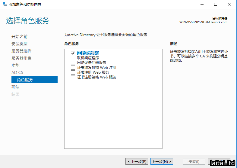 添加Active Directory 证书服务 角色