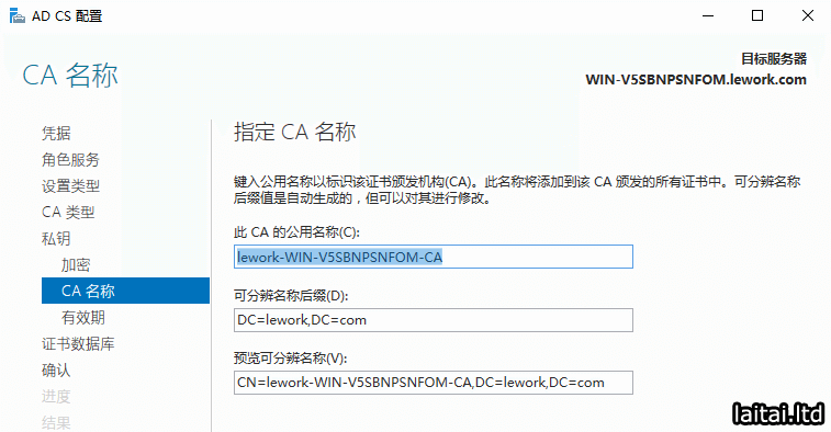指定CA名称,点击下一步