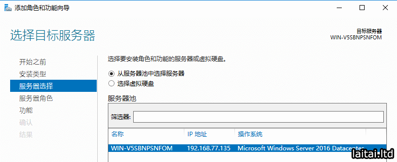 服务器选择从服务器池中选择服务器,再选中池中的本地服务器,点击下一步