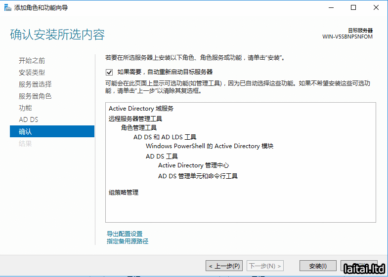“确认”这里勾选如果需要,自动重新启动目标服务器,点击安装