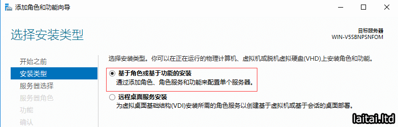 安装类型选择基于角色或基于功能的安装,点击下一步