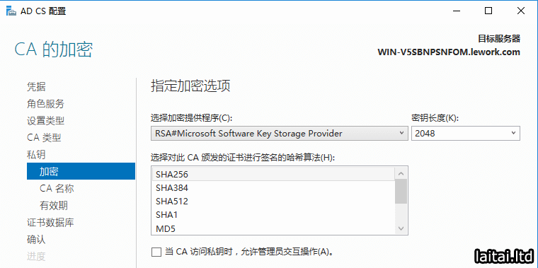 指定CA的加密,默认即可.点击下一步