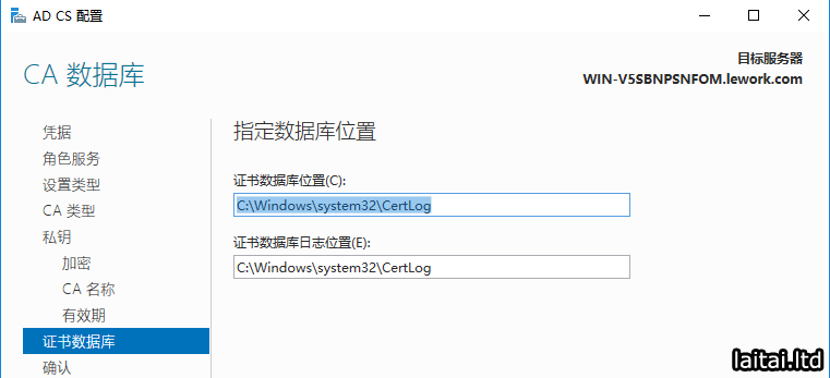 指定CA数据库的位置,默认即可.点击下一步