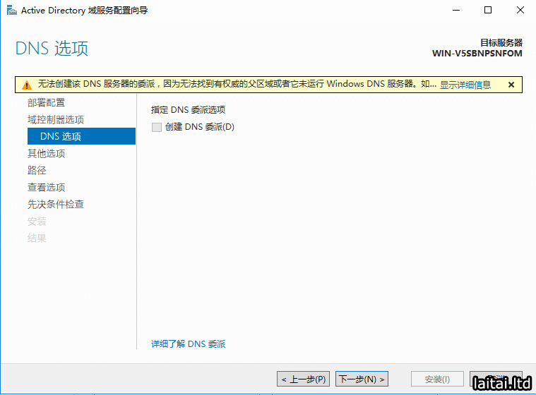 将域控制器添加到现有域:在现有的域控制器中添加新的域控制器