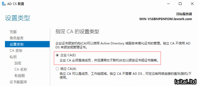 选择企业CA,点击下一步