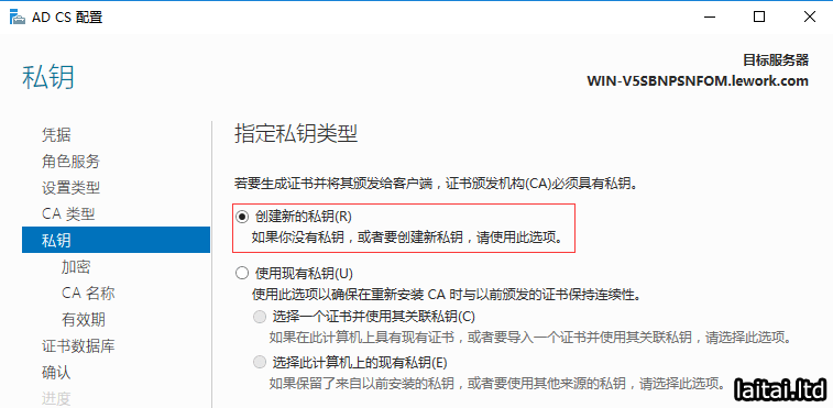 选择创建新的私钥,点击下一步
