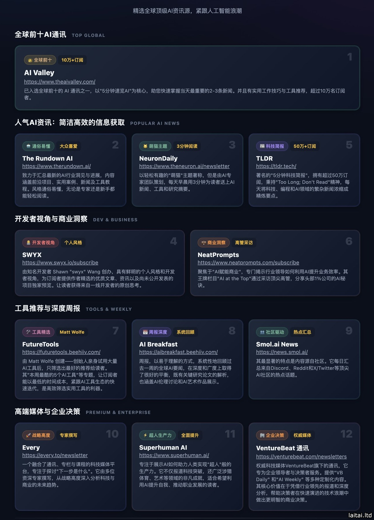 全球排名前十的AI通讯,以“5分钟速览AI”为核心,每日为您精选最重要的2-3条新闻,并附上实用技巧与工具推荐。