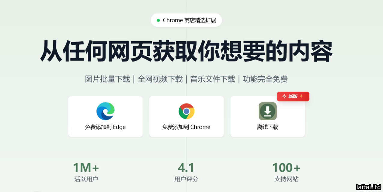 这是一个免费的功能强大的浏览器插件,图片,视频和音频...万物皆可下载!