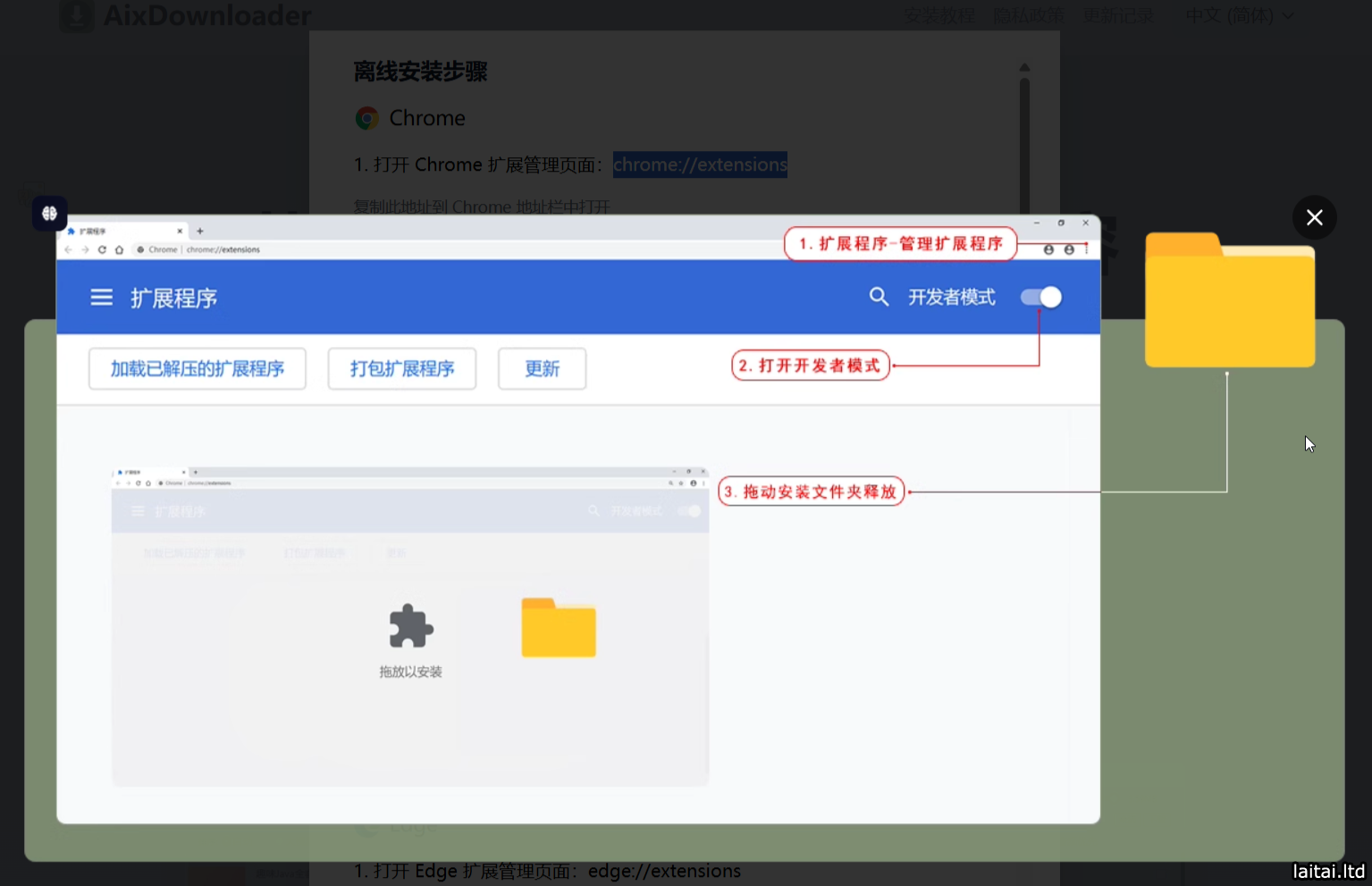 没有魔法的朋友点击右边“离线下载”图标,下载后解压到一个文件夹,打开Chrome浏览器,在浏览器地址栏里输入: