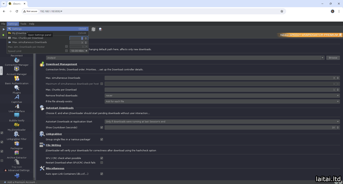 一位开发者,为知名的 JDownloader 2 下载工具提供了 Docker 部署方式,无需安装客户端。