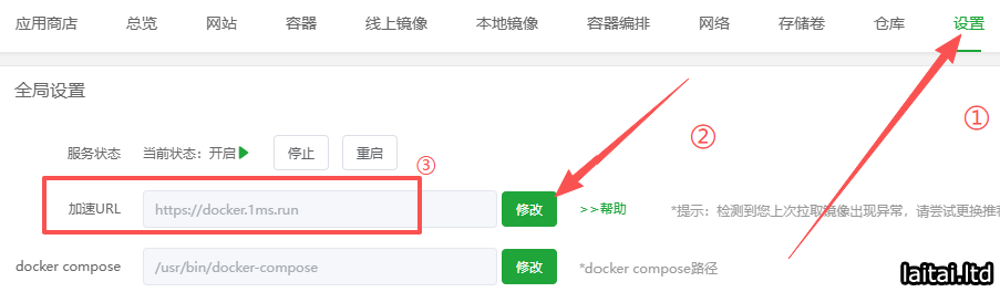 宝塔面板用户:可直接在Docker设置中修改"加速URL",使用https://docker.1ms.run。