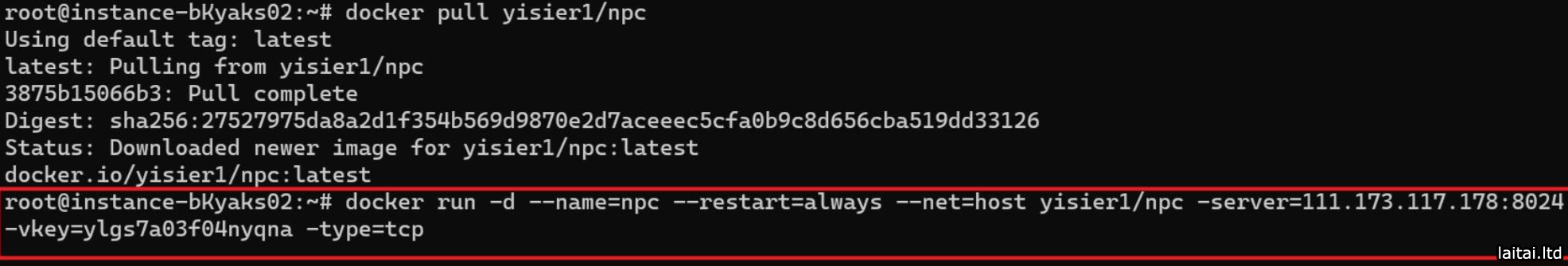 docker run -d --name=npc --restart=always --net=host yisier1/npc -server=<ip:port> -vkey=<web界面中显示的密钥> <以及一些其他参数> # 查看日志