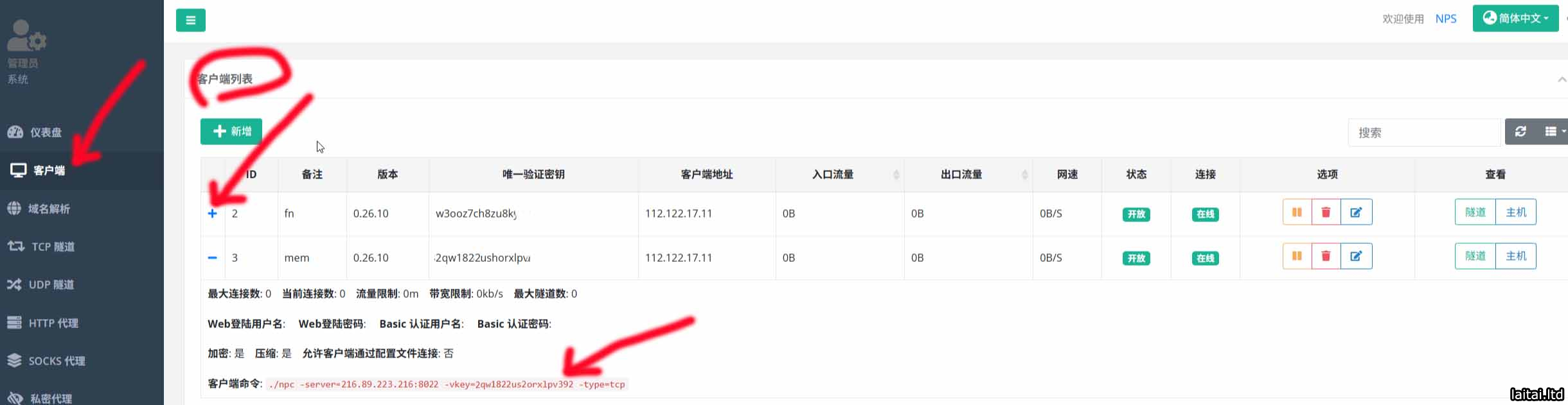 直接输入连接服务端指令即可连接(如果nps所在服务器是端口映射的,请将连接指令中的网址改为映射出去的外网地址):