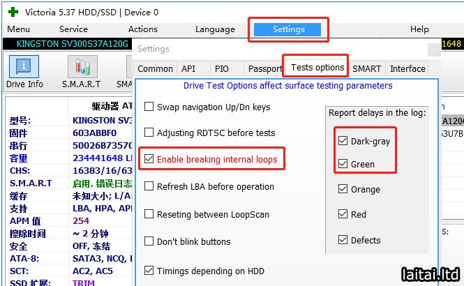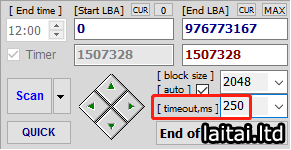 如果有大量坏块,先用 Erase(擦除)进行全盘擦写,将 timeout,ms(超时)改为 100-250ms,看是否减少坏道