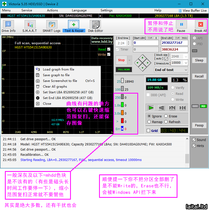 Err表示错误块,复扫如果还存在表示硬盘已坏