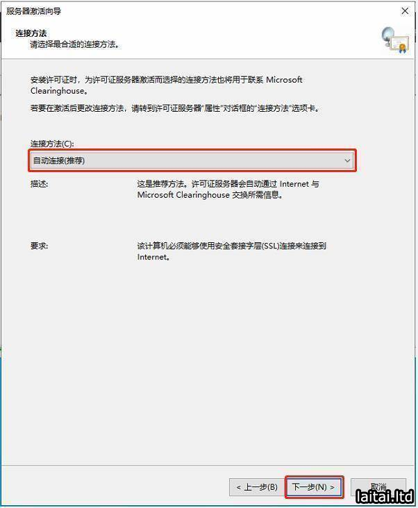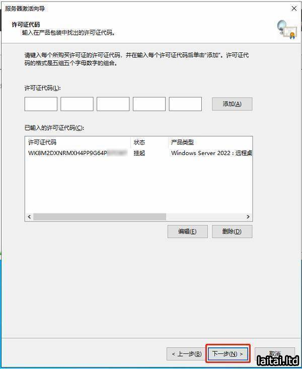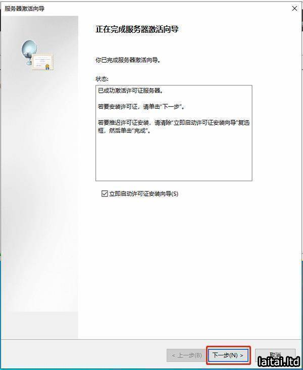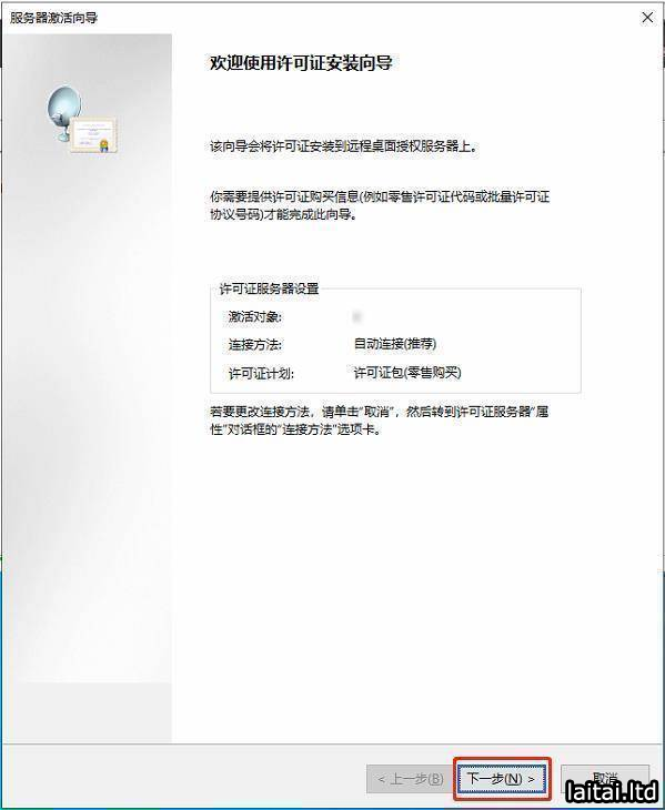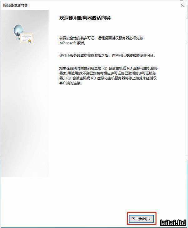 3.在弹出的“服务器激活向导”页面上单击“下一步”。