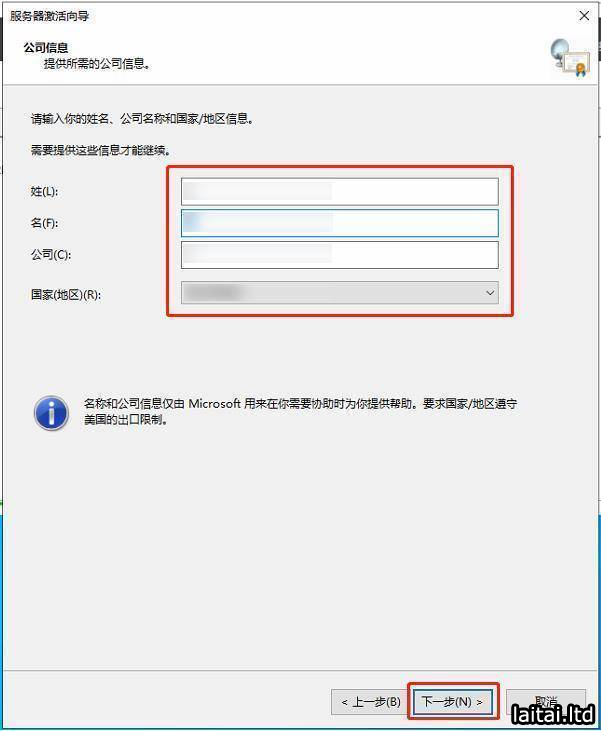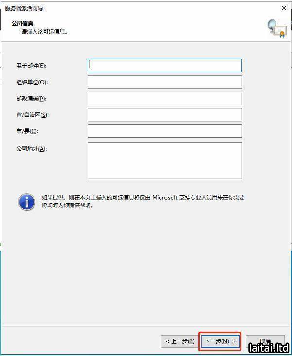 5.公司必填信息(可随意填写),完成后单击下一步。