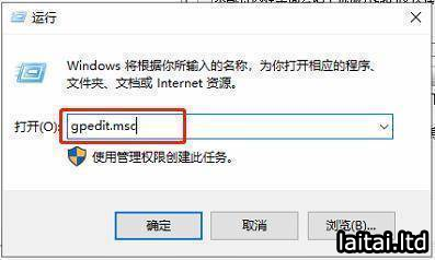 2.在系统运行窗口输入“gpedit.msc”,打开计算机本地组策略。