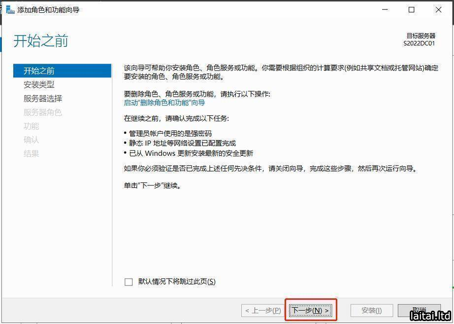 3.在弹出的“添加角色和功能向导”窗口单击“下一步”。
