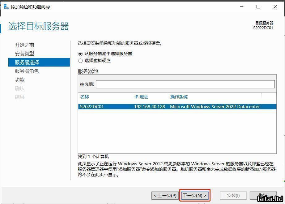 5.选择待安装远程桌面许可服务的服务器。(如为单台服务器按默认就行)
