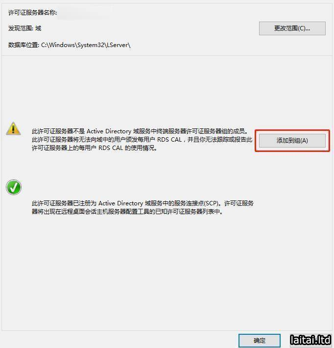 8.打开警告窗口,单击“添加到组”即可完成配置。对于Server加域情况且基于用户的授权模式,整个配置过程完成。