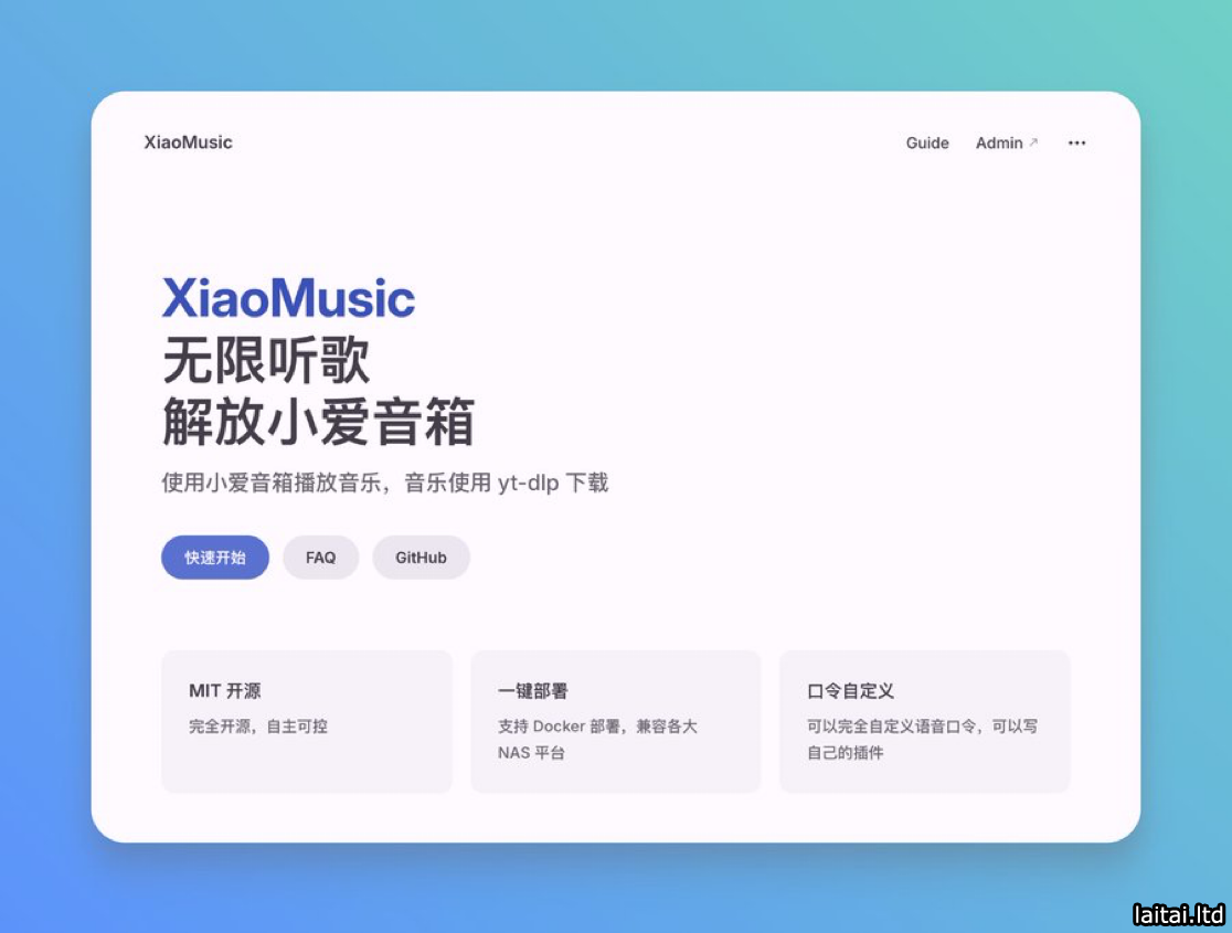 通过 Docker 一键部署即可使用,家里有小爱音箱的同学可以折腾玩下。