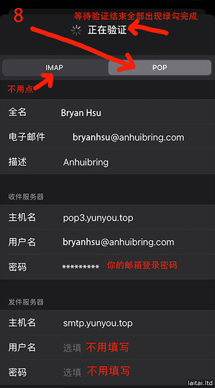 安卓手机设置入口设置 - 添加账户 -电子邮件输入邮件地址、邮箱登录密码,然后点“手动设置” - 点最上端“POP3”用户名和密码上一步已填写自动代入,不用修改。接收设置:服务器填入pop3.yunyou.top其他默认外发设置填入smtp.yunyou.top其他默认完毕。根据国产手机品牌不同可能设置入口会有差异,基本大同小异。